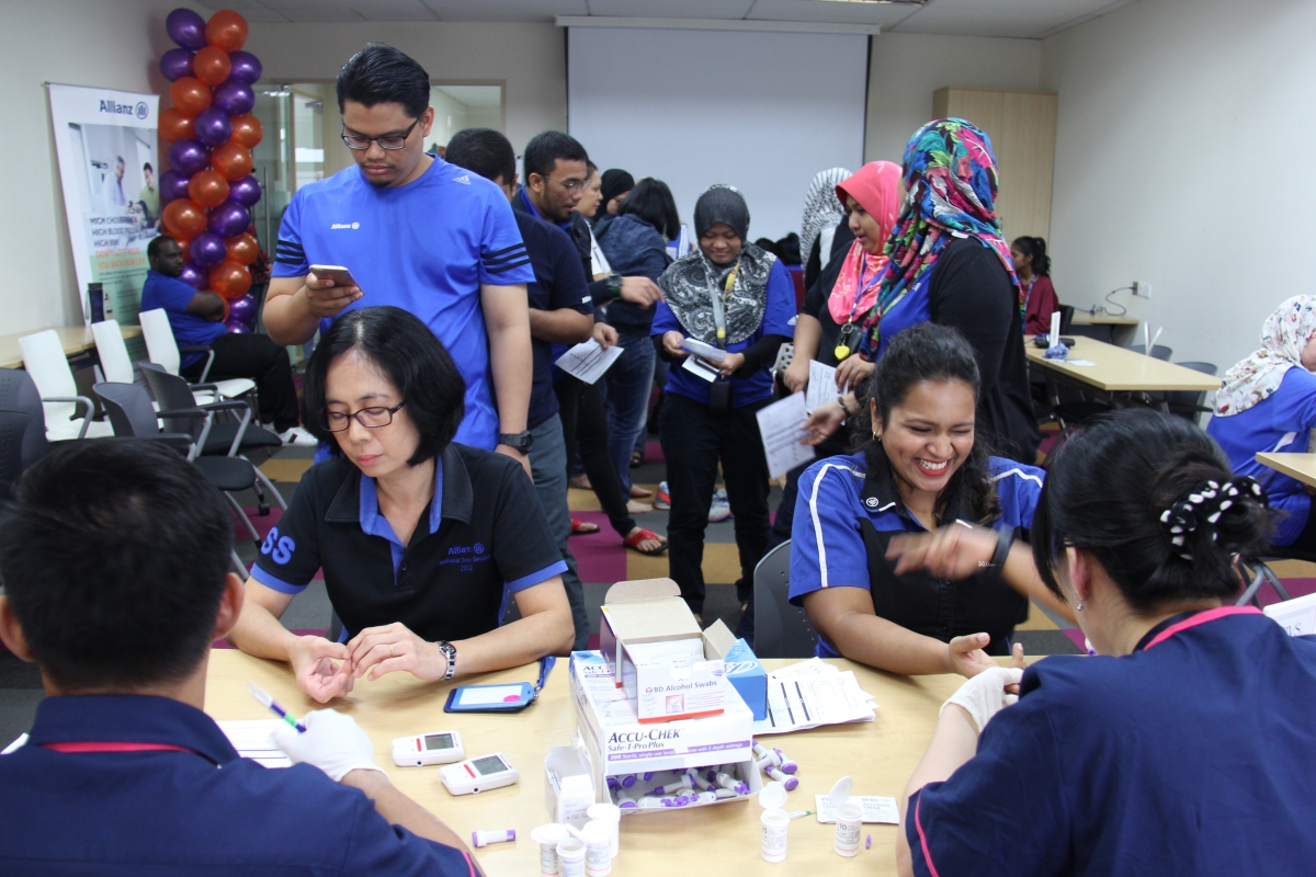 Medical Officers from Cardiac Vascular Sentral (CVS) giving blood test and advise to Allianz staff and employees.
