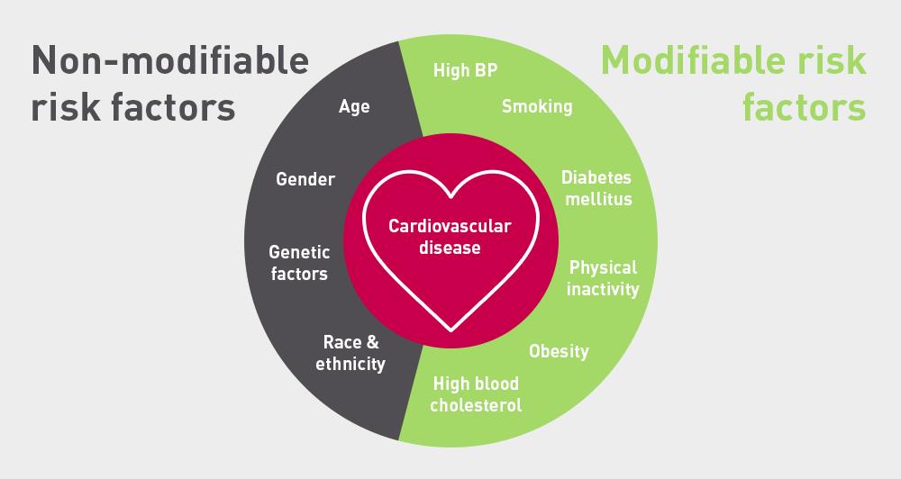 The principle cause of heart attack is a complex inflammatory process called atherosclerosis. This gives rise to the formation of plaques consisting of cholesterol and other materials, which can cause the lining of the coronary artery to narrow or even rupture inwards. This process coupled with its resultant effects is termed coronary artery disease; the No.1 worldwide health problem. The risk factors for developing coronary artery disease can be divided into 2 groups; modifiable and non-modifiable.