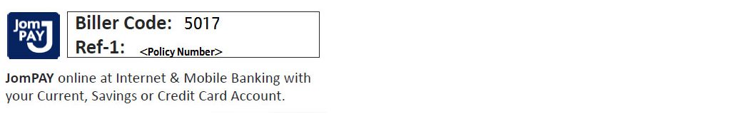 Pay your policies premiums electronically at any time, anywhere with JomPAY. Learn more about this online payment service here