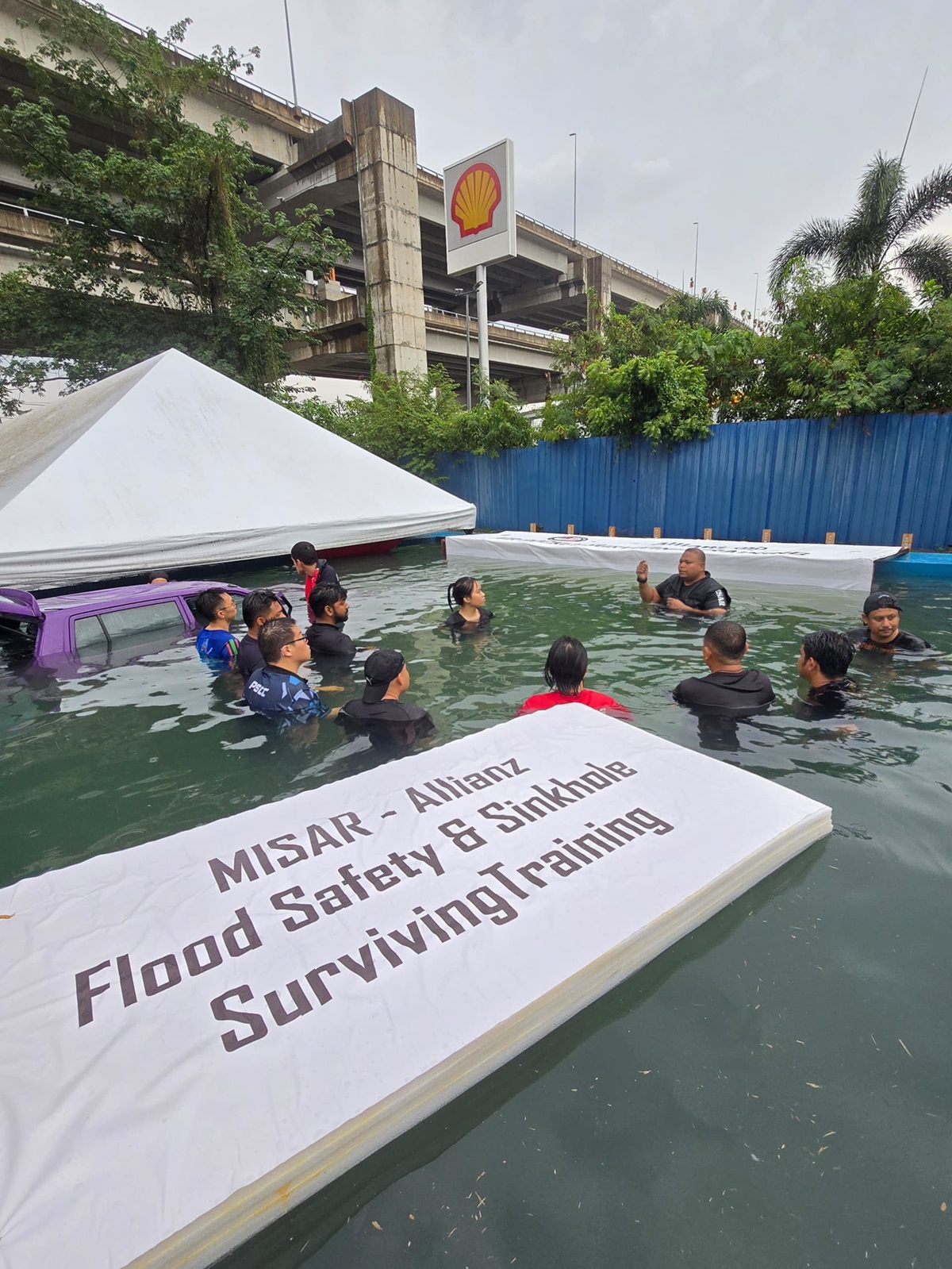 - The MISAR – Allianz Flood Emergency & Sink Hole Survival Program 2025 featured hands-on training covering 18 practical modules, including emergency bag preparation, SOS signalling, “float to survive” techniques, drowning CPR, air pocket survival, roof-to-boat escapes, and sinkhole rescue drills. The training also covered flood evacuation safety measures for children, the elderly, persons with disabilities, and pets.