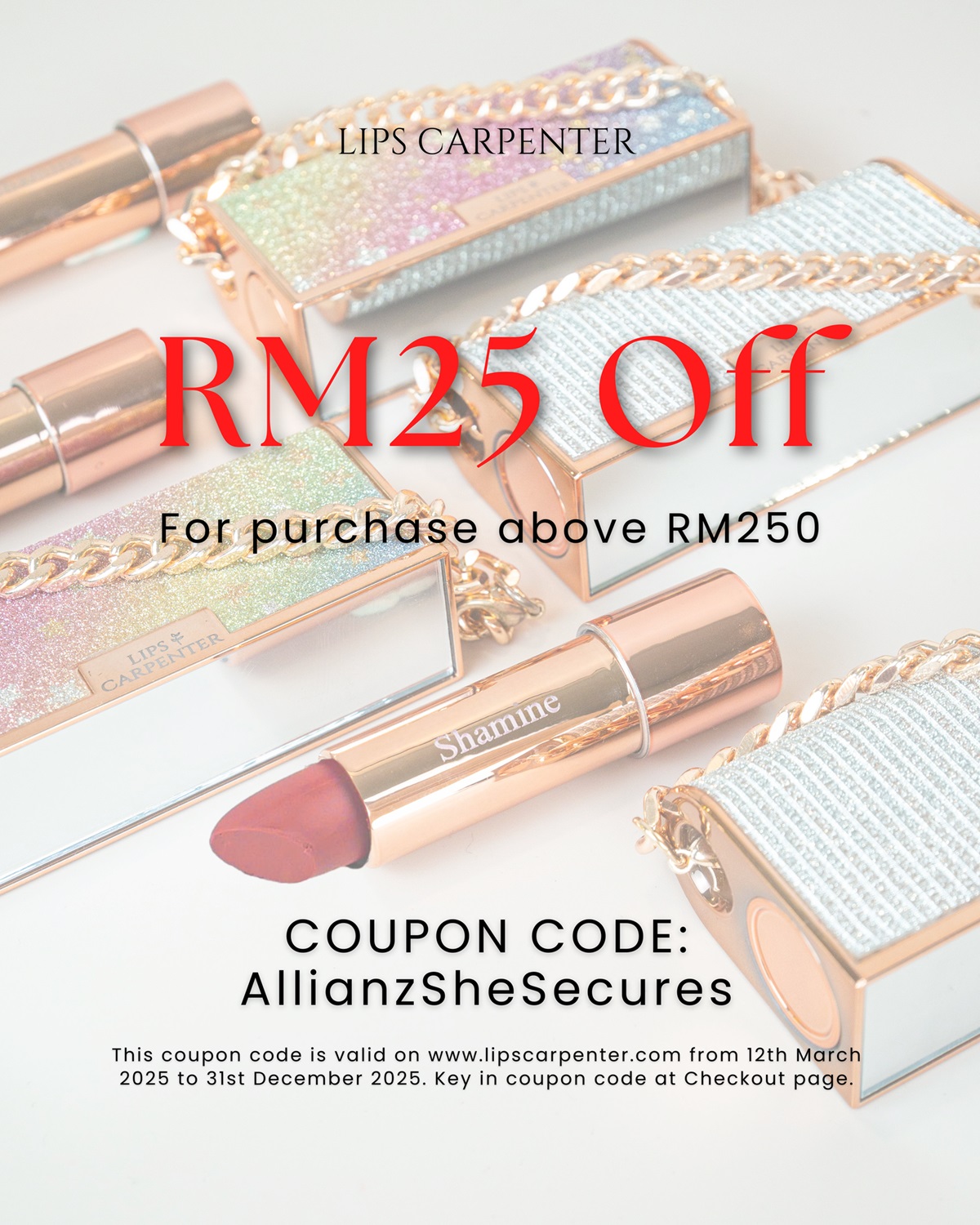 Looking for skincare and cosmetics products made with healthy, natural ingredients, or customized gifts for yourself and friends? Enjoy RM25 OFF on any purchase over RM250 when you shop at Lips Carpenter @ https://www.lipscarpenter.com/